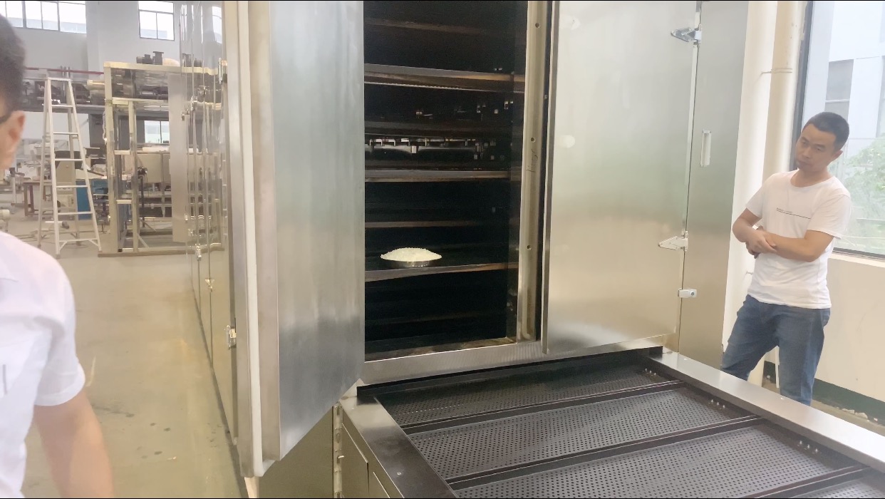 和普通烘房相比较,这个立体烘箱的优势在于:省掉其他配置,和省人工。普通烘房除了要购买烘房,您还要配置推车,烤盘,还要安排很多个人工在周转物料。周转过程中还产生废品,造成车间杂乱。 有了立体烘箱,这些统统都可以省掉,烘箱自动对接前道流水线,不用人工周转,干净卫生。效率还高。您算一下,立体烘箱可以代替掉:烘房/推车/烤盘和人工。减小损耗并且提高生产效率,换不划算呢?