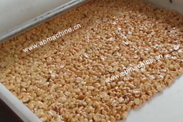 - 这次案例是缪氏食品厂现场试机的一个拍摄视频,两位工人正缓缓的把物料倒进进料口处,一霎间,花生糖就被整压成片状的了,这次生产效果不错...