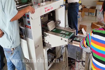 - 本周,经过同事们的辛苦奋战,又销售出去了一台SMZ-420的包装机,客户开的是印刷厂,他们需要用它来包装说明书。SMZ-420枕式包装机有一个进料口,可以用来放置成叠的小书本;机器设定好包装参数后,小书本便经输送带流入包装机里面了。...